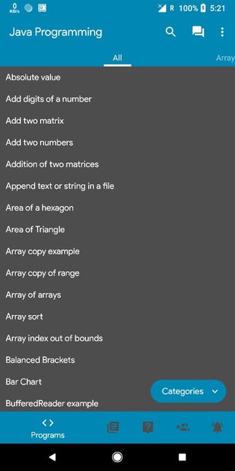 One of the app's most notable features is the chat function with active users and Admin. Additionally, each program comes with comments and output. The categorized questions and answers and notifications for new programs make it easy to navigate. The app's user interface is very attractive and enhanced, making it easy to use. With just one click, you can share the app with others, which is a convenient feature.